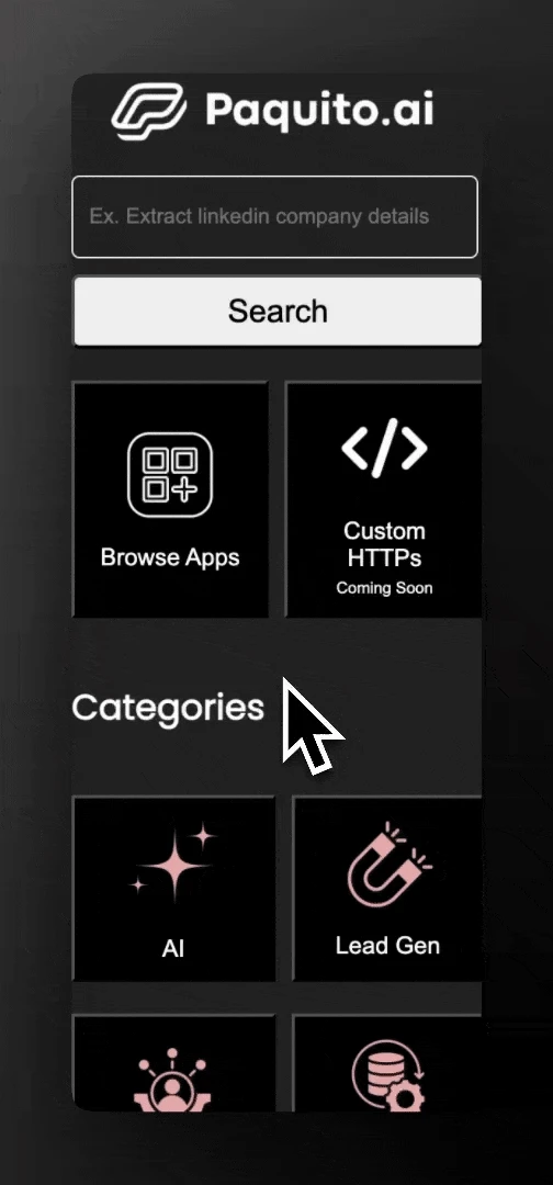 Paquito.ai vous permet d’automatiser vos processus de prospection directement depuis Google Sheets, sans avoir à jongler entre plusieurs plateformes.